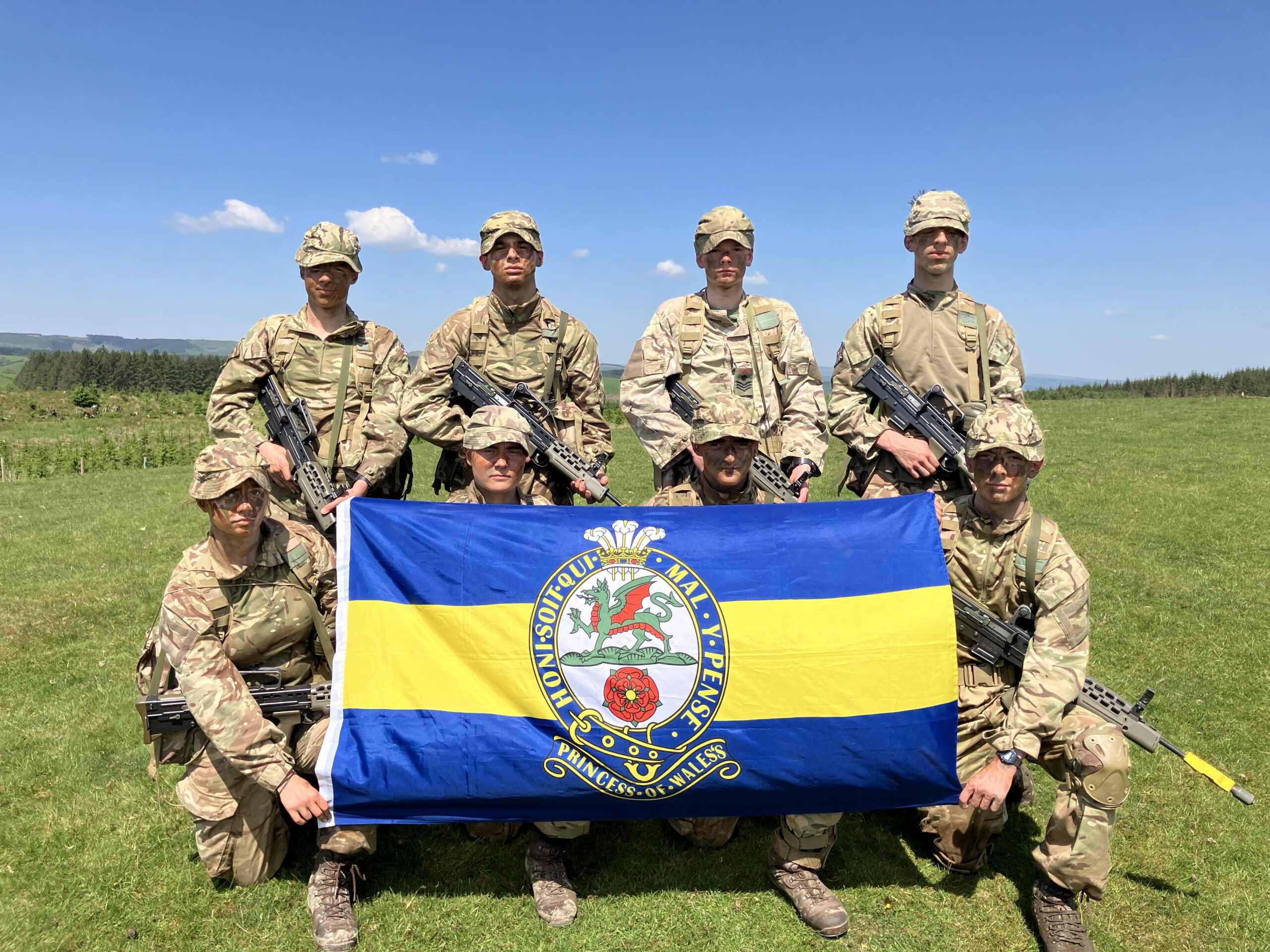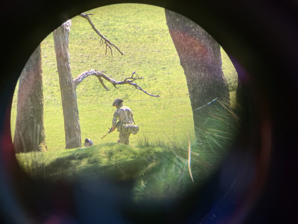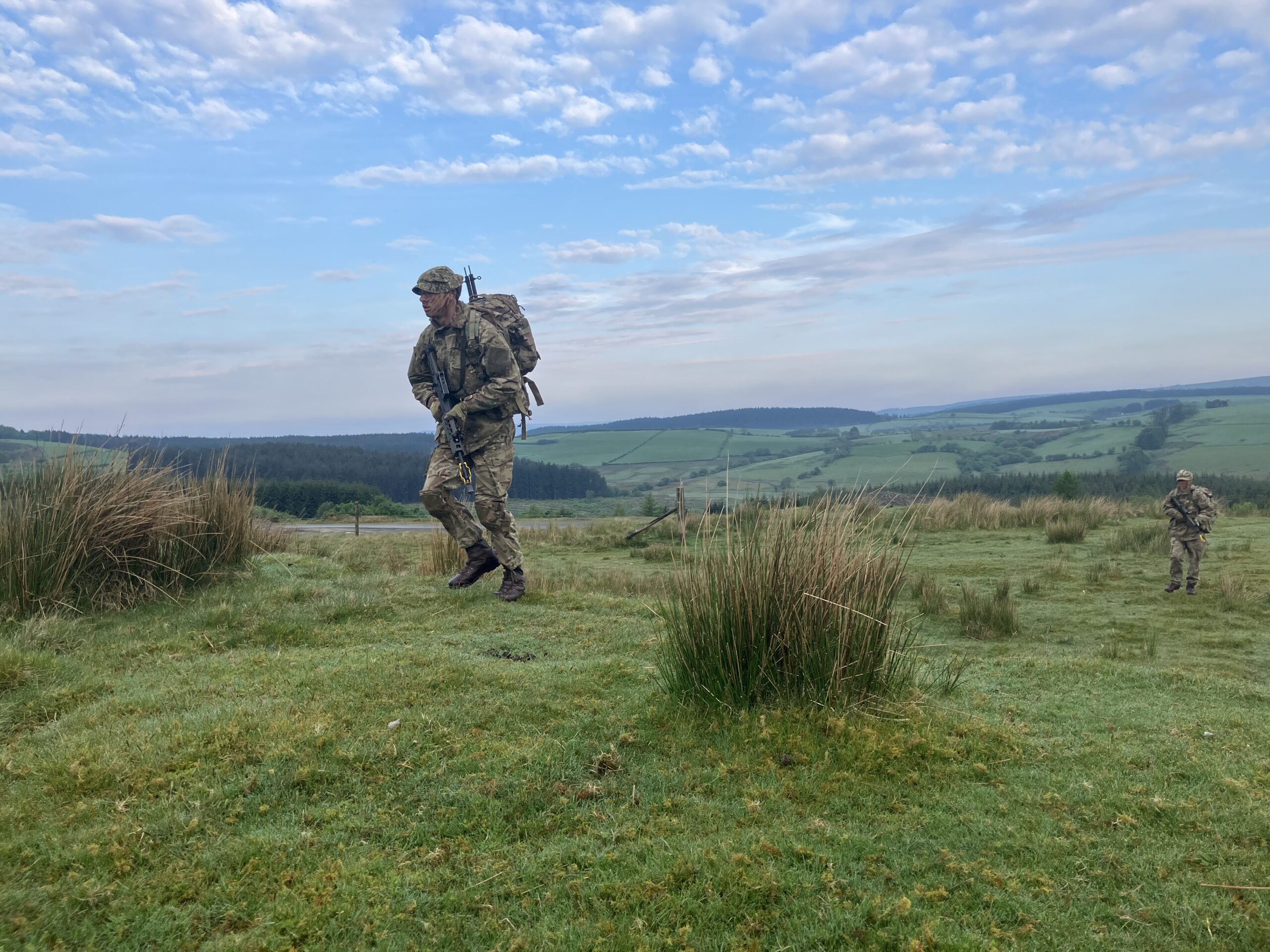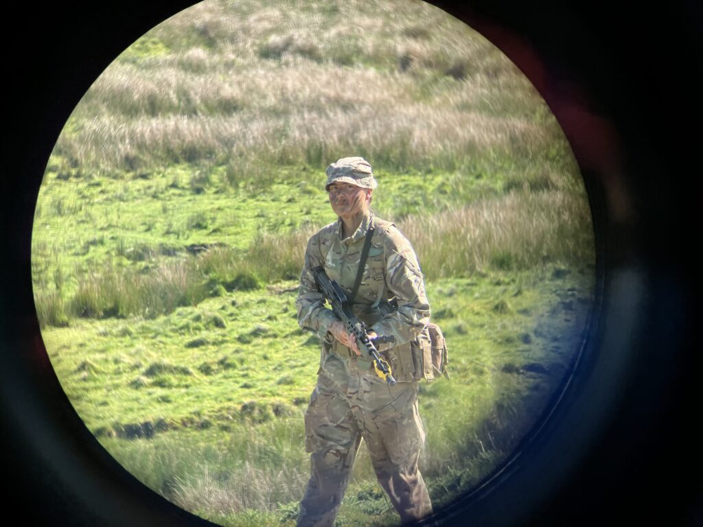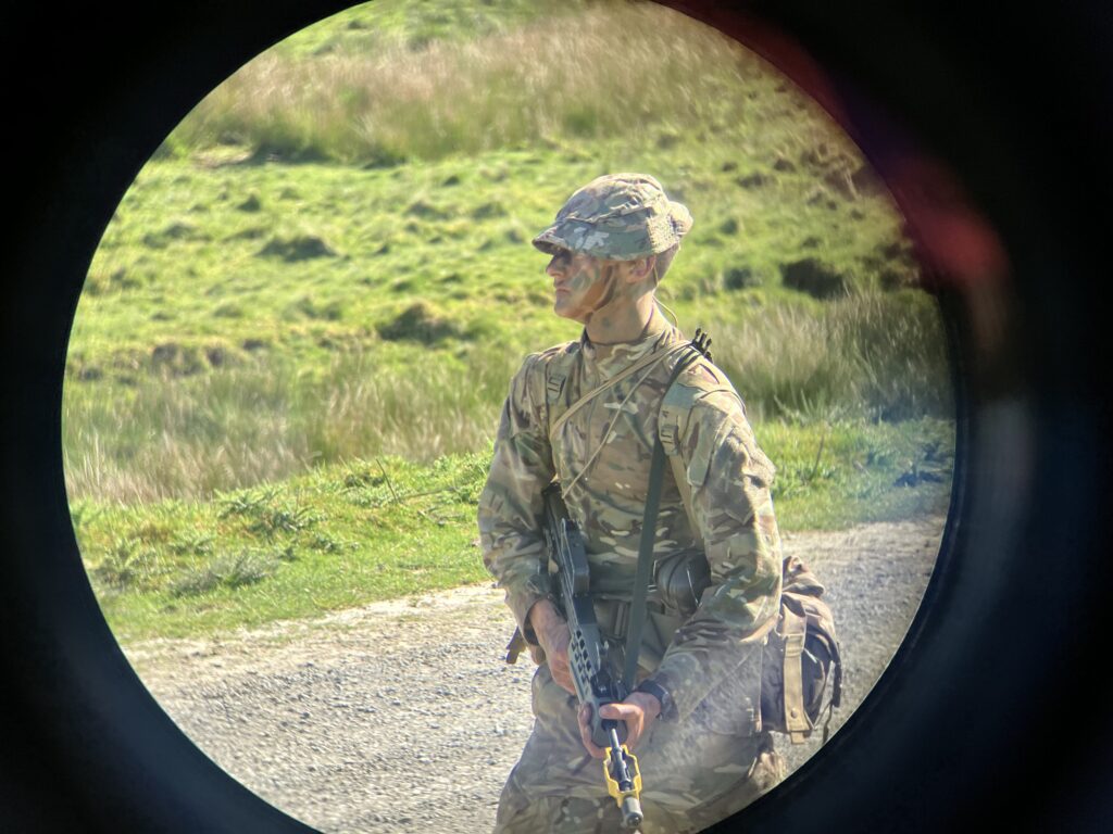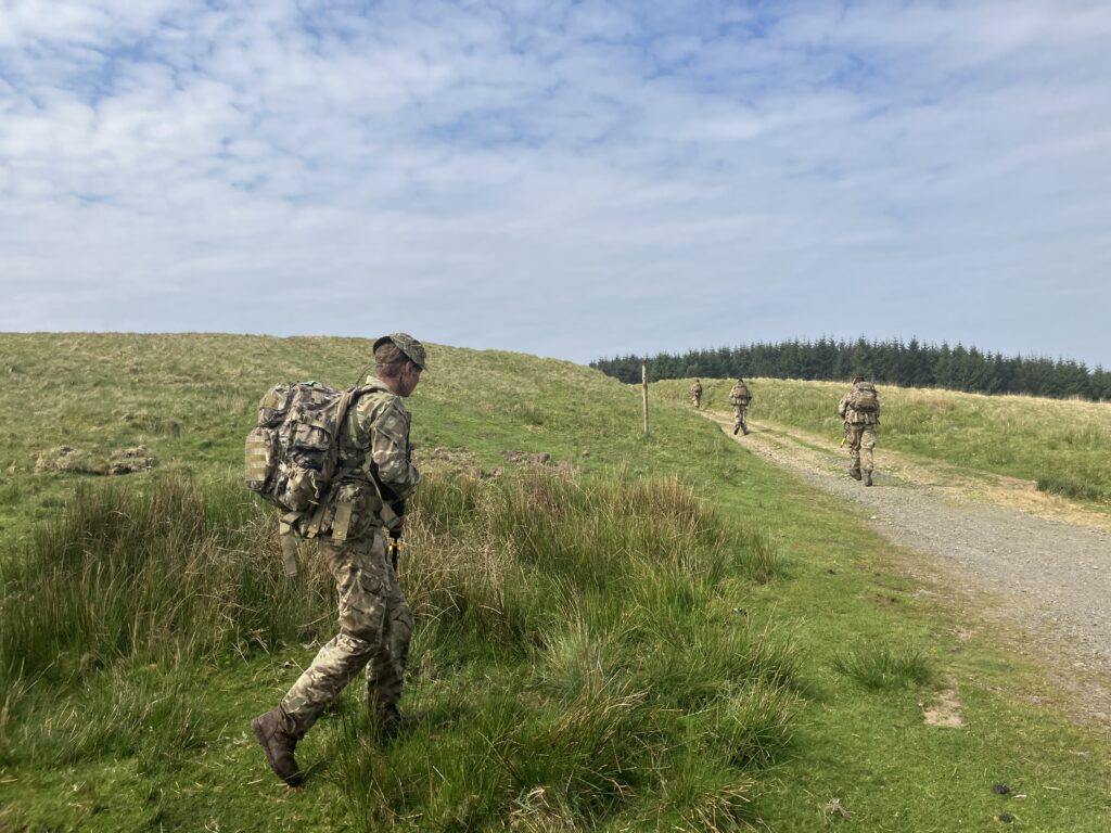As Sunday dawned, we moved to Dixie’s Corner to begin the final patrol of the weekend. In a rolling platoon attack, we supported multiple other sections and completed two section attacks of our own, slickly overwhelming enemy machine gun positions manned by soldiers of the Queen’s Dragoon Guards. Following the final attack, just as we thought, sweaty and exhausted, it was all over, the squad had to complete a casualty evacuation, running with a weighted stretcher for over 500m to the final position of the day.